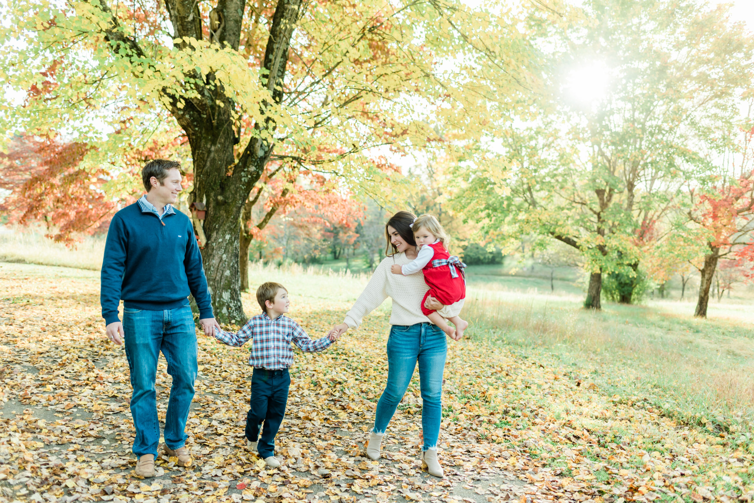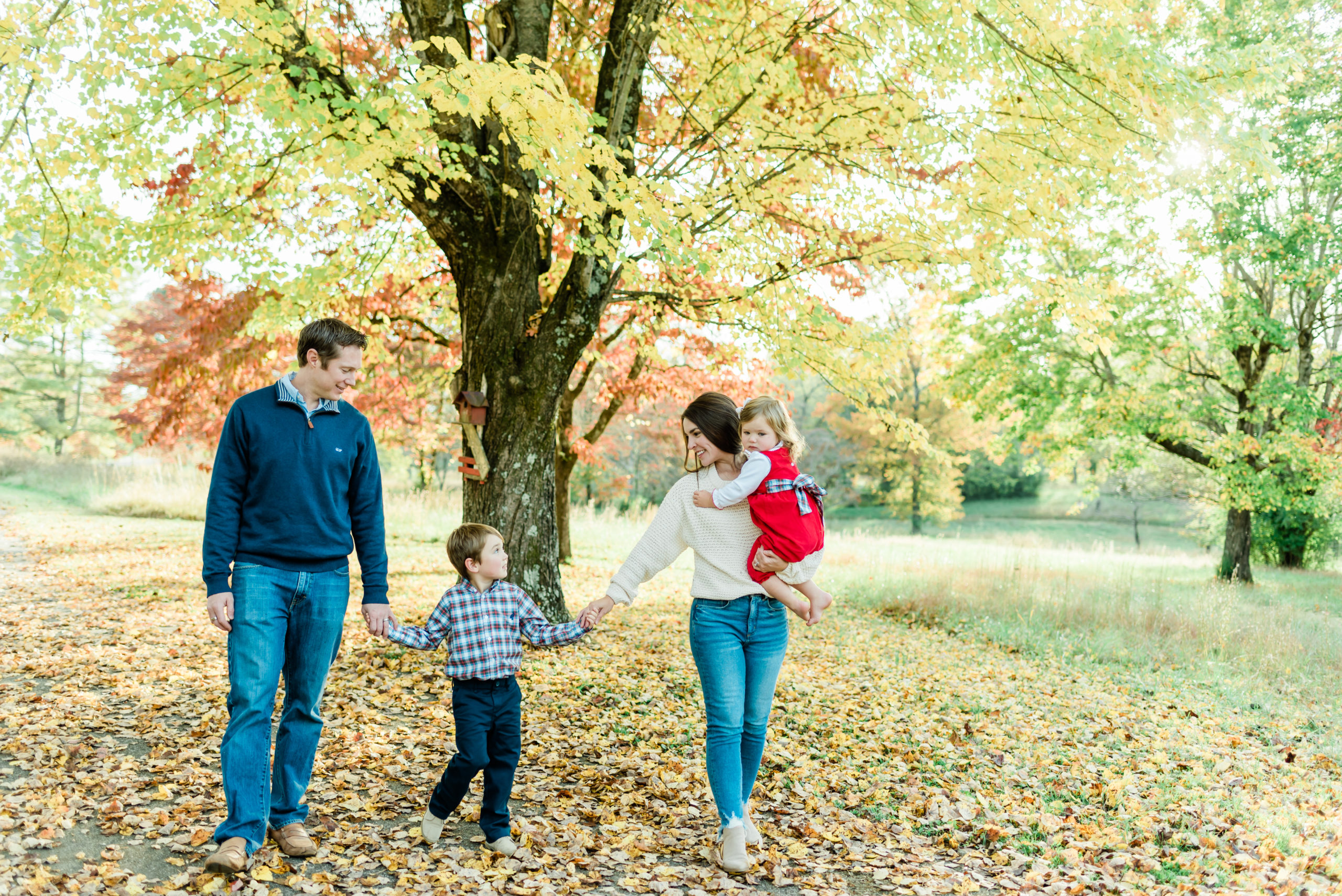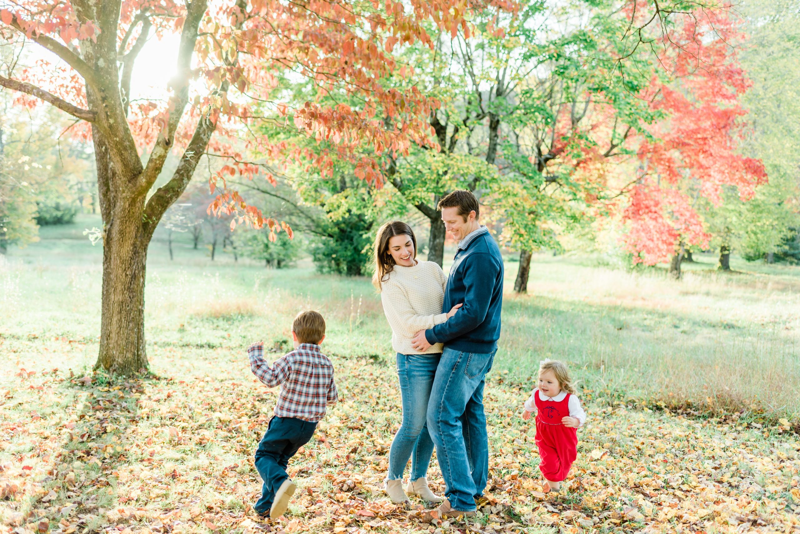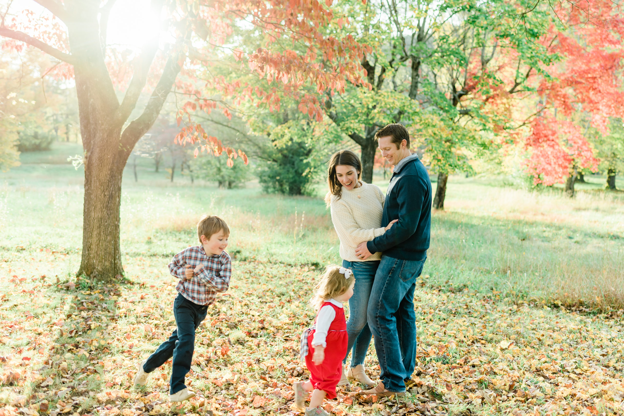 Loved exploring the park with these two littles during this family session! Their sibling bond is already so cute and was on full display during their session. You can tell little sister Caroline adores big brother Walker and wants to be just like him. I had so much fun just watching them run around and play in the leaves with mom and dad. Such a perfect fall day for their session! The colors on the leaves were just stunning at this location too!